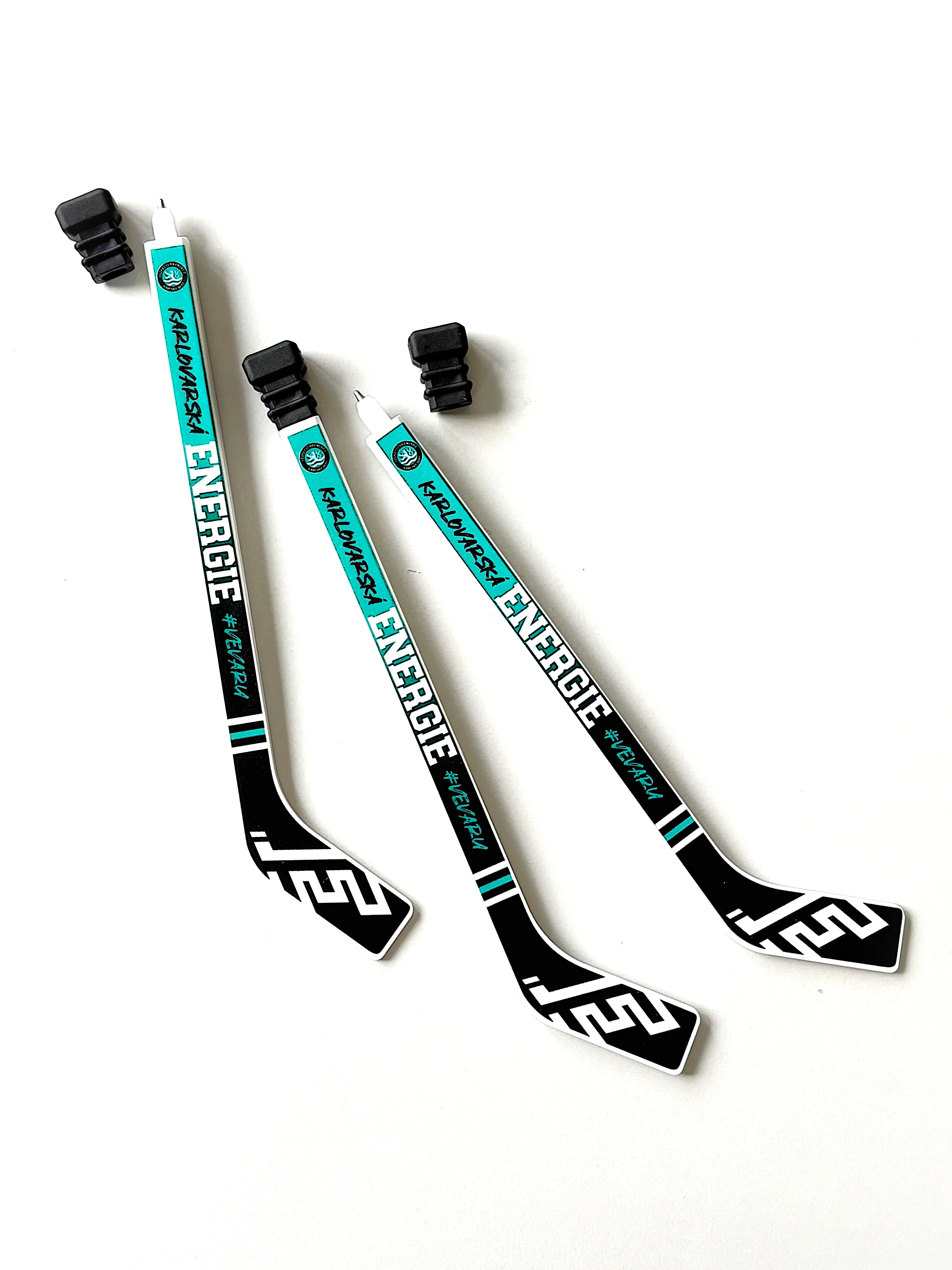 Originální propiska ve tvaru hokejky s motivem HC Energie Karlovy Vary. Stylový doplněk na stůl i praktický suvenýr pro fanoušky. Délka 19,5 cm.